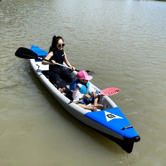 New Design Water Sport 2 Person Sit In Fishing Inflatable Drop Stitch Foldable Drift Canoe Kayak With Paddles